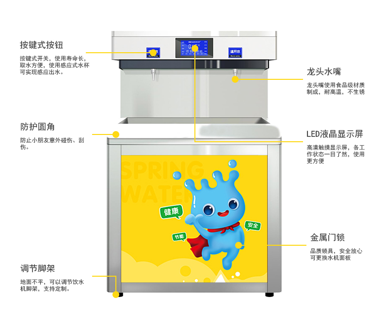 六、開水物理降溫,不產(chǎn)生陰陽水:采用先進的熱交換技術(shù),保持恒定溫水,避免孩子們出現(xiàn)打水燙傷和飲用冷水。