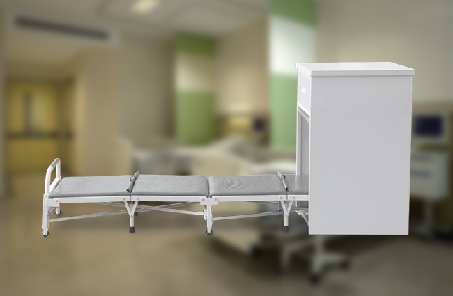 然而我們的共享陪護床,它屬于一種醫院智能床頭柜設備,平時以床頭桌柜的形式存在,桌面供放置物品使用,內部存放一張折疊床被特制的鎖具鎖住,使用時只需使用智能手機掃碼開鎖,使用完畢合上,點擊關鎖就可以結算,既方便快捷又能節省空間,十分便利。