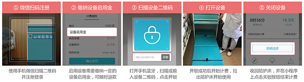 共享陪護(hù)床的租借流程也是非常簡(jiǎn)單,對(duì)于用戶來(lái)說(shuō),只需要打開(kāi)手機(jī)微信,直接掃描柜子上的二維碼,授權(quán)小程序的登錄請(qǐng)求,先充值一定的金額,即可自動(dòng)進(jìn)行開(kāi)鎖,彈開(kāi)柜門(mén)。此時(shí),我們只需要打開(kāi)柜門(mén),拉出柜子中存放的折疊陪護(hù)床,考慮到病房的特殊環(huán)境,共享陪護(hù)床在床內(nèi)裝有彈簧裝置,避免了陪護(hù)床在拉出過(guò)程中產(chǎn)生的噪音。使用完成后,提拉床上的拉繩,輕輕松松即可收回陪護(hù)床,推回柜子,關(guān)上柜門(mén)。如果陪護(hù)床采用的是NB鎖,那么用戶在關(guān)上柜門(mén)以后就可以自動(dòng)進(jìn)行關(guān)鎖結(jié)算了;但是如果采用的是藍(lán)牙鎖,那么用戶還需要在關(guān)上柜門(mén)以后,再進(jìn)入小程序,點(diǎn)擊關(guān)鎖即可進(jìn)行結(jié)算。