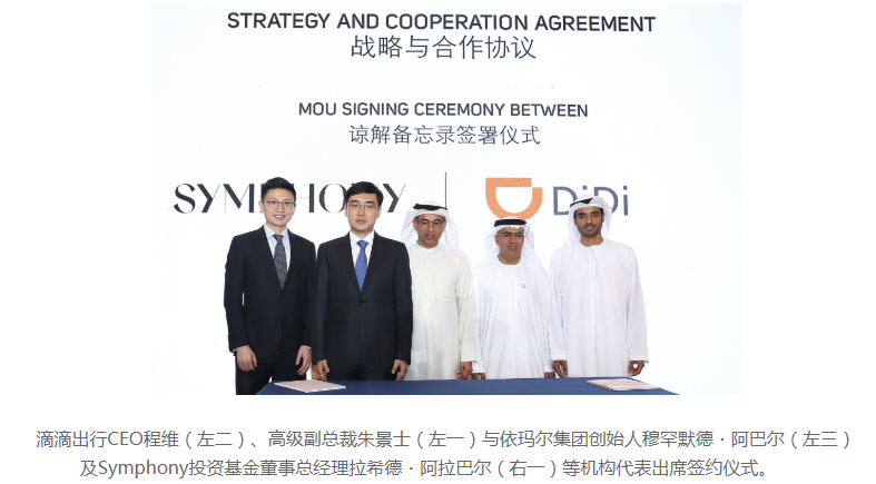 7月22日,Symphony投資基金與滴滴出行簽署戰(zhàn)略合作協(xié)議,在中東北非地區(qū)就共享經(jīng)濟(jì)和互聯(lián)網(wǎng)消費(fèi)行業(yè)探索廣泛的合作, 推動(dòng)完善中東北非地區(qū)數(shù)字商業(yè)生態(tài),建立惠及中東與中國的創(chuàng)新產(chǎn)業(yè)伙伴關(guān)系。中國商務(wù)部副部長俞建華和阿聯(lián)酋經(jīng)濟(jì)部部長蘇爾坦本 薩伊德曼蘇里共同出席了簽約儀式。